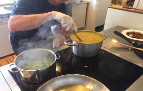 Måltiderne er en del af fællesskabet på Glim Refugium. Normalt spiser vi sammen, men der er også mulighed for at tilberede sin egen mad i sin egen bolig. Erfaringen viser imidlertid, at vi alle nyder godt af fællesskabet ved måltidet. Det giver oplevelsen af, at vi hører sammen og det fører ofte til, at vi også bruger tid sammen på andre ting end at spise. På denne måde kommer der et meningsfuldt indhold i dagligdagen, og man styrker og udvikler sider af sig selv, som man måske ikke var klar over, at man havde.