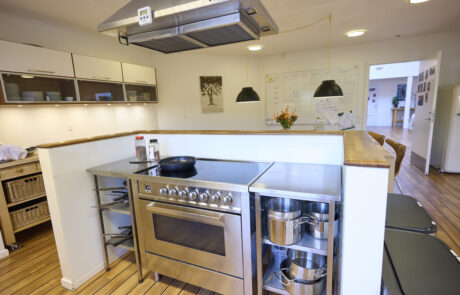 Køkkenet er en central enhed på Glim Refugium, og det er også naturligt, at både beboere og medarbejdere deltager i madlavningen, der selvfølge foregår efter reglerne om hygiejne m.v. Derfor udarbejdes madplaner og vagtskemaer, som alle kan bidrage til. Det forventes, at man deltager med de erfaringer og kræfter man har.